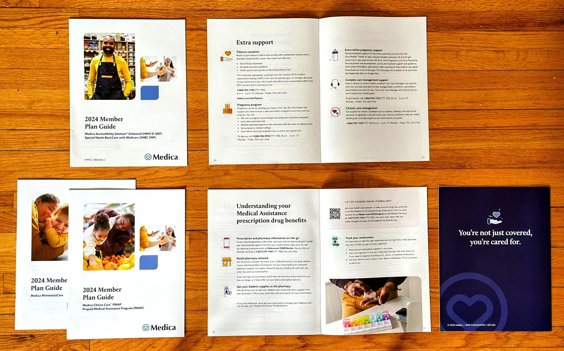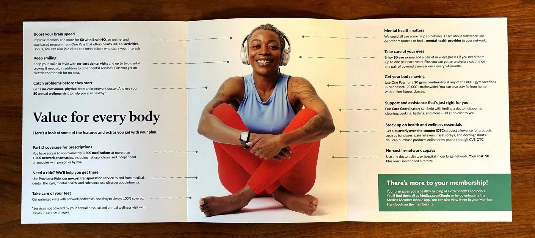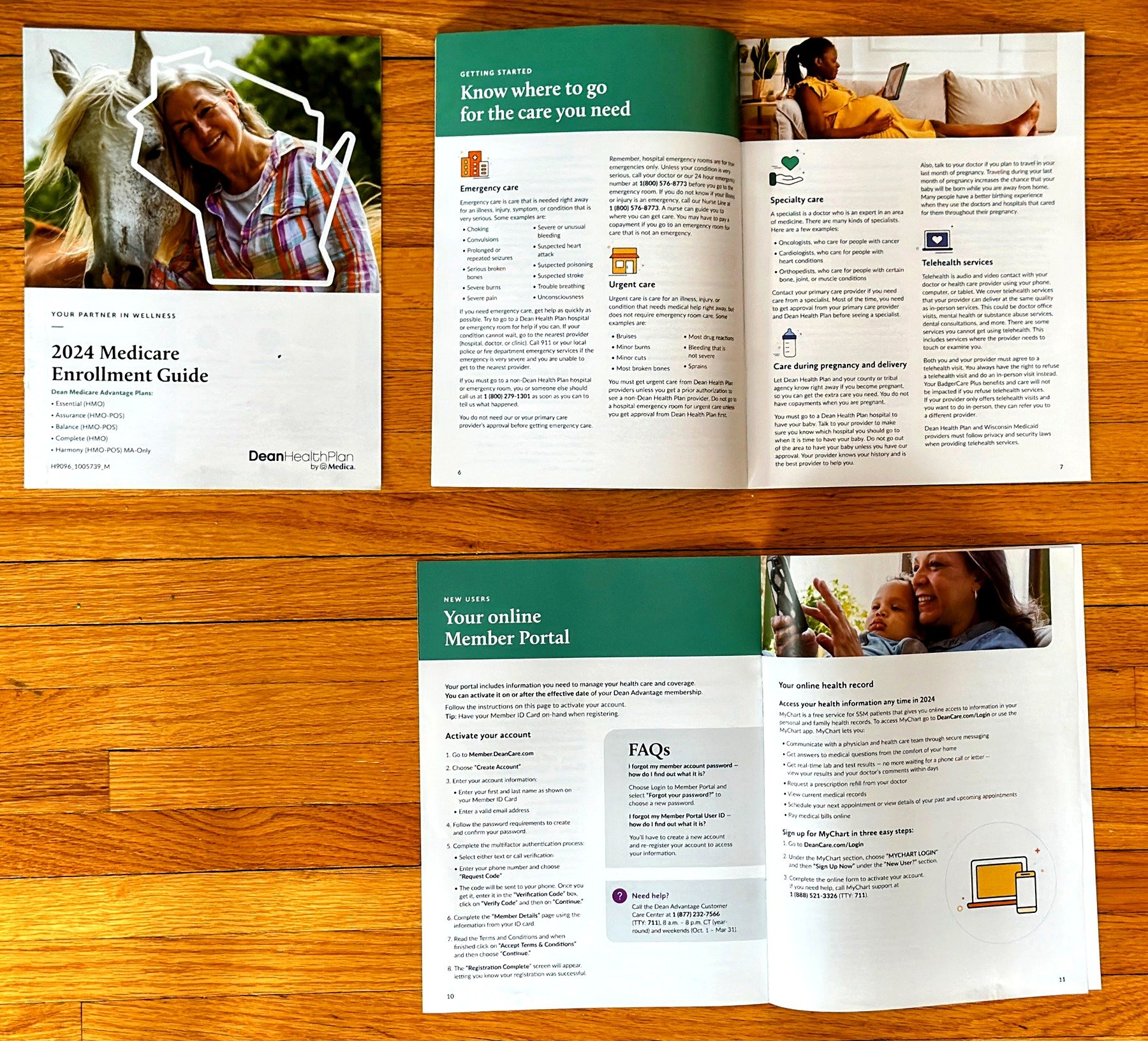 Medica and Dean Health Plan by Medica serve different audiences across different markets — but every member touchpoint speaks the same visual language. A shared typographic system, unified color palette, and consistent icon library create a template framework that scales across enrollment guides, member plan guides, welcome kits, and editorial publications like Be.Well magazine.